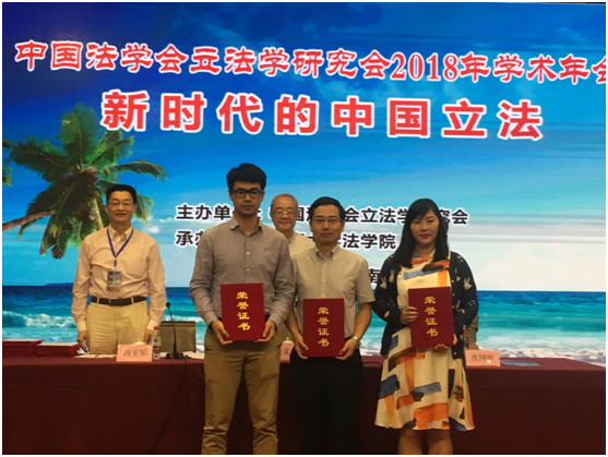 2018年10月27日至28日,由中国法学会立法学研究会主办、海南大学承办的中国法学会立法学研究会2018年学术年会在海南大学隆重举行,来自全国各地的立法学专家、立法实务工作者共300余人参加会议。公司汪全军助理教授全程参加了年会的各项议程,其提交的《<立法法>第七十二条第二款中“等”的含义解释》一文获得中国法学会立法学研究会2018年学术年会“青年论文奖”一等奖。