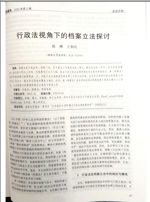徐琳:行政法视角下的档案立法探讨|CSSCI《档案学通讯》 2020(5)