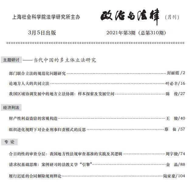 近期,公司周宇骏助理教授在CSSCI来源期刊《政治与法律》2021年第3期发表论文《合目的性的审查分层: 我国地方性法规审查基准的实践及其逻辑》。