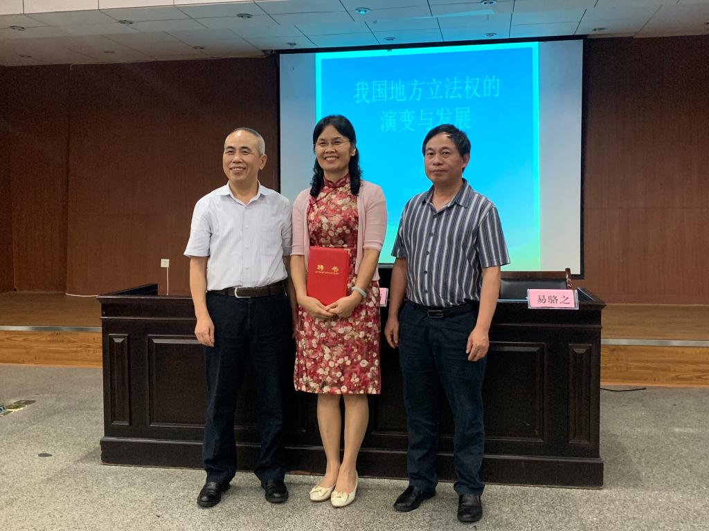6月4日晚,湖南省人大常委会法制工作委员会吴秋菊主任出席公司模拟法庭,为公司学子带来主题为“地方立法权的演变与发展”的精彩讲座。qy球友会经理屈茂辉老师担任此次讲座的主持人,千亿球友会公司党委书记易骆之老师同湖南省人大常委会法制工作委员会卿晓英主任以评议嘉宾身份出席了本次讲座。