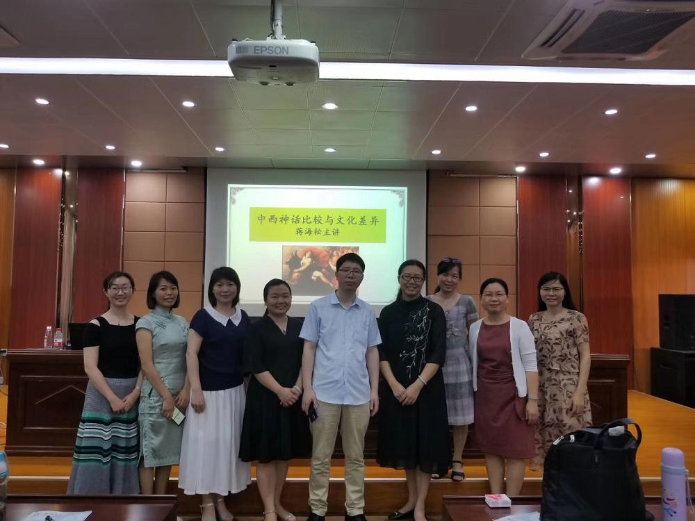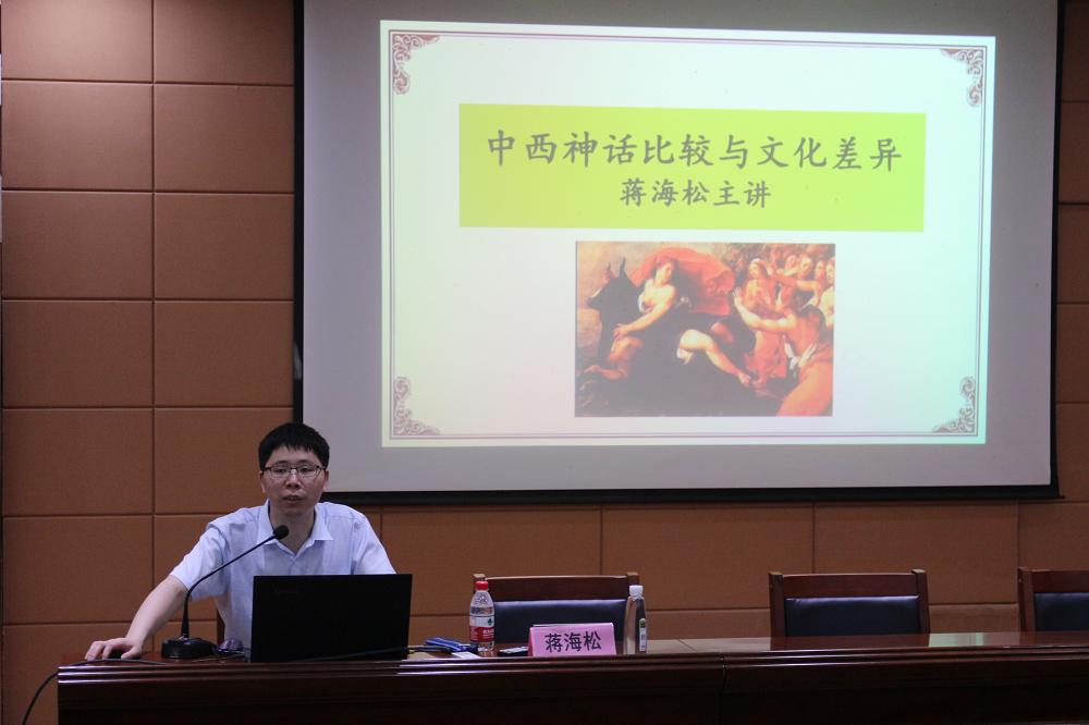 近期,qy球友会副教授蒋海松应邀到广西壮族自治区讲学。2019年5月17日下午,蒋海松应邀在广西北部湾大学国际教育与外国语公司举行“中西神话比较与文化差异”学术讲座。国际教育与外国语公司冯丽经理、刘卫玲副经理以及该院全体师生共同聆听了此次讲座。这也是蒋海松主创的中国大学MOOC《法说西游记》全国线下巡讲第6期。