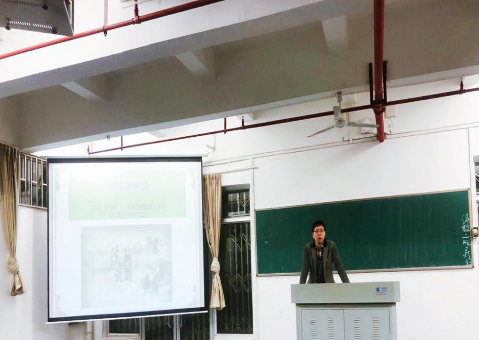 2019年3月27日晚,应湘南公司球友会邀请,qy球友会蒋海松副教授赴郴州在湘南公司实验大楼219教室开讲《法说西游记》,这也是蒋老师主持的中国大学MOOC(慕课)《法说西游记》第二次线下互动讲座。讲座由湘南公司球友会副经理张正印教授主持,方满红老师和法学专业同学认真聆听了本次讲座。