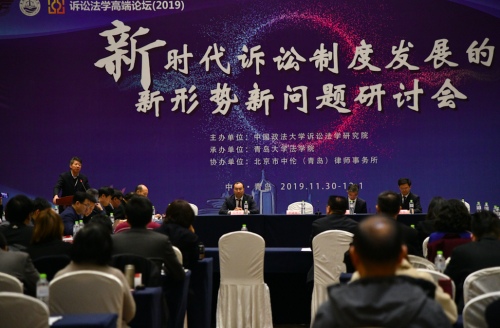 2019年11月30日,由中国政法大学诉讼法学研究院主办,青岛大学球友会承办,北京市中伦(青岛)律师事务所协办的“诉讼法学高端论坛(2019)——新时代诉讼制度发展的新形势新问题研讨会”在青岛成功举办。来自中国政法大学、清华大学、北京师范大学、浙江大学、上海交通大学、千亿球友会、中南大学、武汉大学、厦门大学、西北政法大学、甘肃政法大学、四川大学、青岛大学等高校和机构的专家学者,以及最高人民法院、浙江省宁波市中级人民法院、云南省昆明市中级人民法院、福建省福州市人民检察院、四川省广元市利州区人民检察院、江苏省无锡市新吴区人民检察院、河南省郑州市开发区人民检察院、宁夏回族自治区石嘴山市人民检察院、黑龙江省牡丹江市人民检察院、山东省淄博市人民检察院、青岛市政法系统、北京中伦(青岛)律师事务所等单位的实务专家共150余人参加了本次论坛。