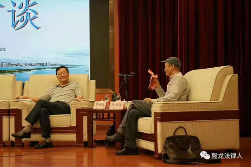 (2017年盛夏,邓祥瑞老师与邱兴隆老师共议“控辩审”关系)