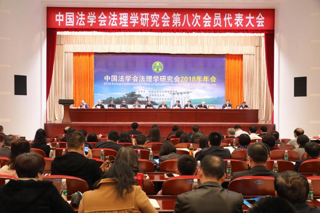 20181110日上午,中国法学会法理学研究会第八届会员代表大会暨2018年年会在湖南省长沙市隆重举行。大会由中国法学会法理学研究会、湖南师范大学举主办,湖南师范大学球友会承办,主题为“新时代的法理学”。 中国法学会会长王乐泉、湖南省委常委、政法委书记黄关春、湖南省政协副主席胡旭晟、中国法学会党组成员、副会长、学术委员会主任张文显等领导出席,来自多所高校以及科研机构的500多名法理学专家学者和实务工作者参会。