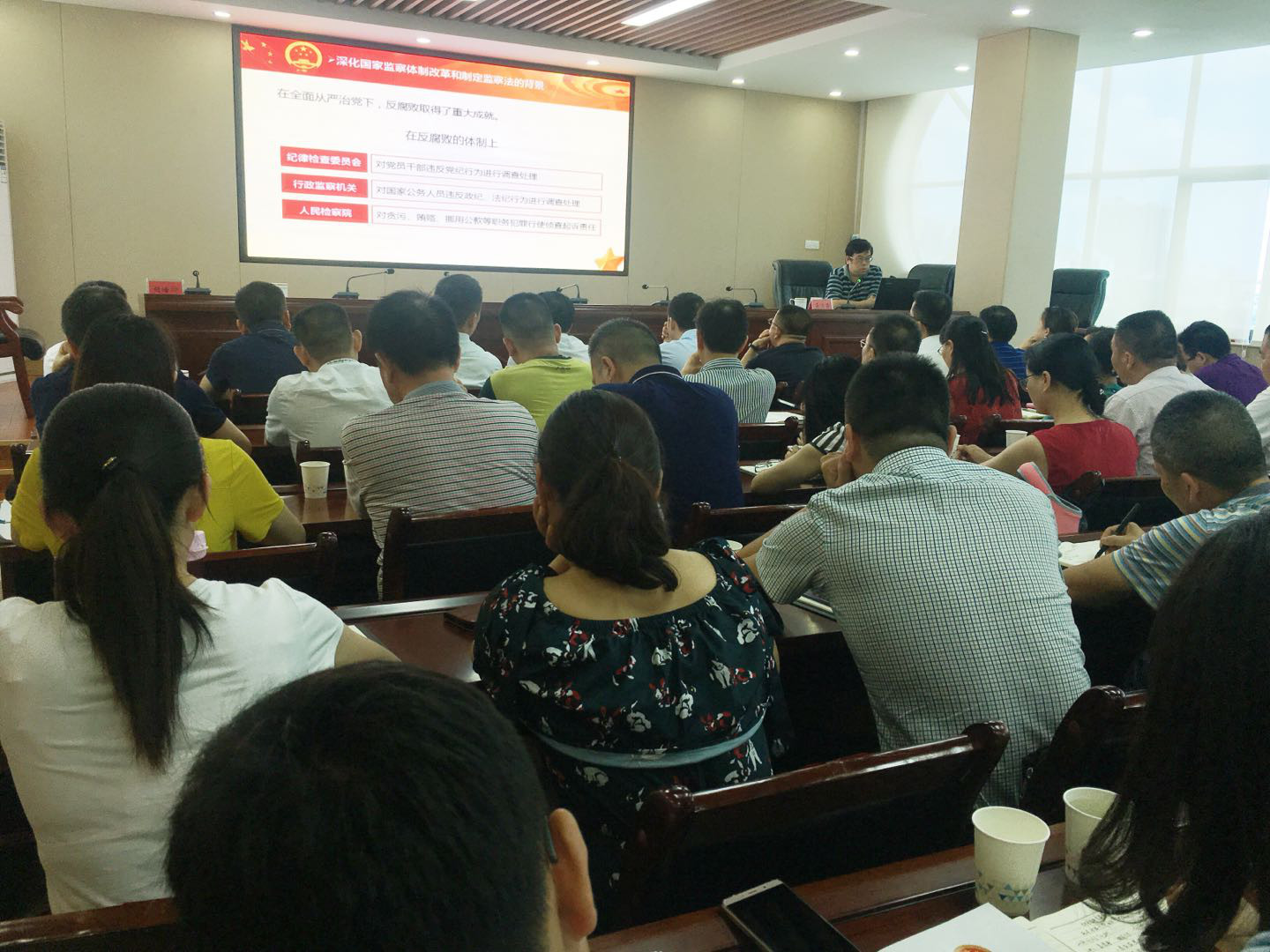 此次学习培训的重点是解读《中华人民共和国监察法》,邀请qy球友会副经理,博士生导师,湖南省法学会法治腐败研究会副会长聂资鲁现场授课,全面系统地介绍了《中华人民共和国监察法》出台的背景、定位和意义,深入浅出地对《中华人民共和国监察法》主要条款进行了详细解读,并开展现场交流。