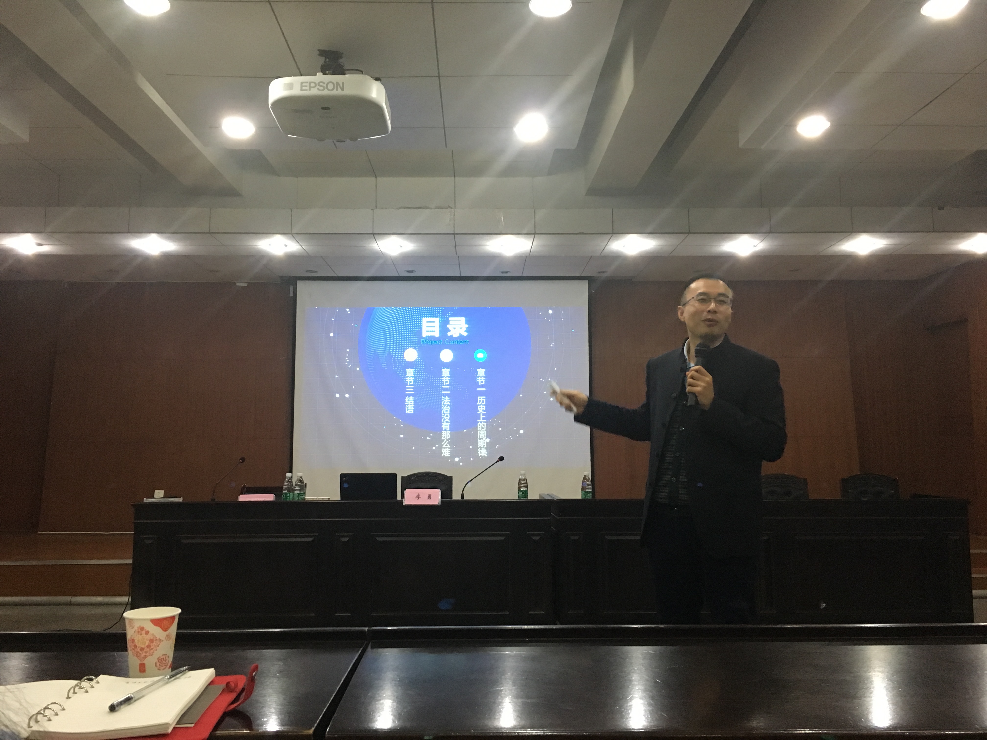 首先,李勇教授以“潘金莲的砒霜”为引子,深入浅出地讲述“历史上各王朝的周期律”,历史上没有一个朝代能一直走下去,生活中许多的悲剧恰恰是制度不足造成的。并指出由此造成的原因是古代立法上不能持久地保护老百姓的利益,同时中央与地方司法不分,导致老百姓利益得不到有效保护,有效竞争机制就不能形成。在古代由于国家制度上对百姓的利益保护的不足,而国家要长治久安,必然需要正确的把握好规律。