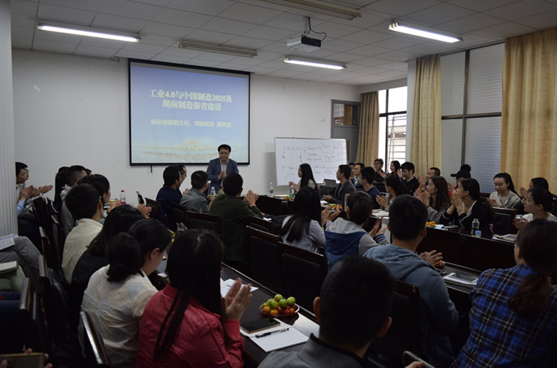 讲座伊始,主持人颜克高老师对殷林波副主任进行了介绍,对殷林波副主任来公司授课表示热烈的欢迎。此次讲座,殷林波副主任的授课主题为“政府职能转移:《中国制造2025》与湖南制造强省行动计划”。首先,殷林波副主任从新一轮科技革命出发,详细地介绍了新一轮科技革命的特征和新一轮产业变革的趋势,进而从工业4.0着手,分析了我国和欧美发达国家在工业4.0时代背景下的主要战略,并进行了比较分析;其次,殷林波副主任从指导思想、基本方针、战略目标、战略任务、突破重点和具体流程这几个方面带我们深入了解了中国制造2025的总体要求。同时,分析了我国制造业大而不强的原因,认为可以归结为自主创新弱、产品质量不高、产业结构不合理和资源环境的承载力接近极限这四个方面;最后,在对我国制造2025的具体分析之后,殷林波副主任讲述了我省在制造强省建设方面的现状,从多个方面论证了我省是制造大省,同时分析了我省在推进制造大省建设中将面临的机遇与挑战,并阐述了我省在制造强省建设方面的战略目标和基本思路。