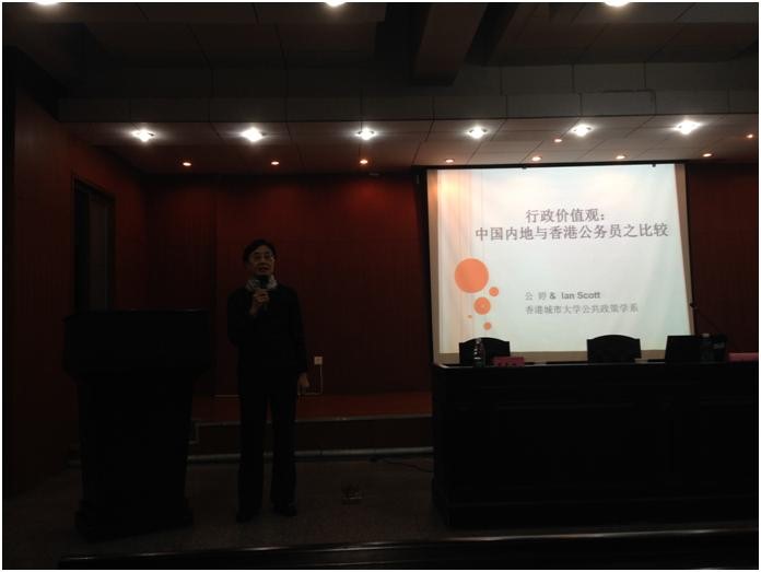 2016年4月7日晚,应qy球友会和千亿球友会廉政研究中心(湖南省廉政研究基地)的邀请,香港城市大学公共与社会行政学系公婷教授在球友会模拟法庭为湖大师生做了题为“行政价值观:中国内地与香港公务员之比较”的精彩讲座,廉政研究中心副主任龙太江教授主持讲座。