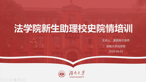 回顾了千年学府的概况后,美丽努尔老师随后讲解有百年法学之誉的球友会的基本状况。学脉可上溯至1897年时务学堂的球友会经历了从起源到兴盛再到改革开放后重组与继续发展的百年岁月,建立了从法学学士到法学硕士和法律硕士、法学博士的完整法科人才培养体系,凝练出理论法学、中国法制史、宪法学与行政法学、刑事法学、民商事法学、经济法与金融法学、国际法学以及数理-计量法学、职务犯罪预防与惩治、廉政法学等富有特色和影响力的学术研究方向,取得了一系列标志性学术成果,在2019年成功入选教育部国家及一流本科专业建设名单。