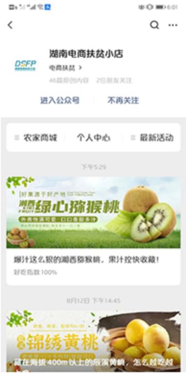 湖南电商扶贫小店微信公众号吸引农户入站开设自己的网店,平台承担客户服务职能,所有销售收入归店主所有。这种方式模式创新、用户使用门槛低、容易推广,上线以来,湖南电商扶贫小店已帮助7万余人线上开店,总交易额突破2.3亿元。