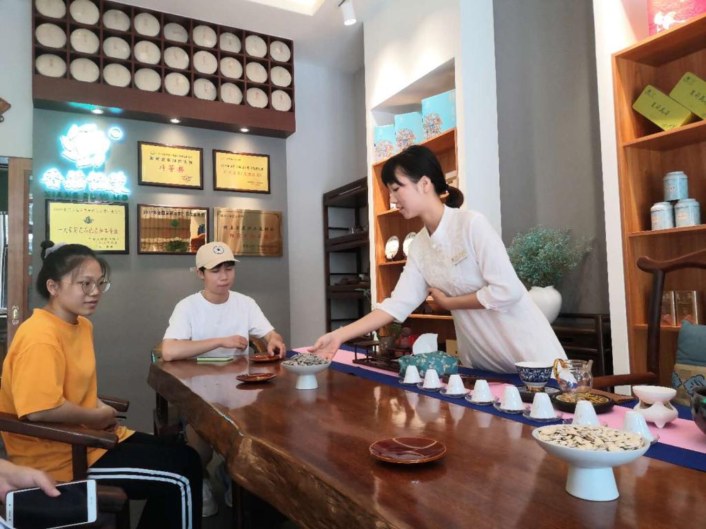 作为广西第一个农村淘宝示范县,近年来,横县积极利用“互联网+”思维发展茉莉花和茉莉花茶产业,不断优化电商发展环境,着力从产业培育、技术支撑、创业孵化、金融支持、人才引进等方面打造多元化的电商服务体系。在交流中,实践团队一行也了解到长海茶厂也正在利用这一新的机遇积极转型、发展一系列自营品牌。讲解人员介绍,该茶厂于2019年开拓电商平台渠道,目前公司品牌传播平台主要包括淘宝、京东、拼多多、抖音、1688等,团队也从最初的七八人发展壮大至如今的四五十人。今年年初新冠疫情的爆发阻挡了人们出行的步伐,带动了网络购物的兴起。长海茶厂的工作人员也借此机会,通过直播带货的形式进行自身产品的推广,今年“618”活动最火爆的时候,日均可接到几千甚至上万份订单,前景十分可观。通过电商平台,茉莉花可以销售到全国各地甚至世界各地,这不仅促进了茉莉花产品的销售,也有助于提高横县茉莉花产业在各地的知名度。同时,讲解员提到,横县在茉莉花与电商产业发展过程中十分注重人才培养,非常欢迎与支持优秀毕业老员工回到家乡贡献出自己的一份力量。