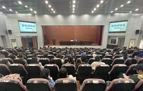 会议伊始,第十九届员工会主席张子政介绍了宣讲会的基本情况,并向同学们提出在部门中锻炼自我的期望。随后来自球友会分团委办公室、组织部、宣传部、实践部和员工会活动部、调研部、权益部、学习部,以及挂靠公司的知识产权协会、法律青年社的同学依次上台开展宣讲。参与宣讲的各部门组织以PPT与小视频相结合的形式,分别对各自的性质、职能、特点与加入各组织后的日常生活加以介绍,内容幽默风趣,达到新生们在欢笑中对各组织的工作有进一步了解的目的。