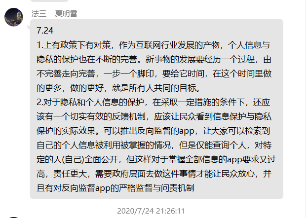 针对平台信息处理过程不透明、使用者维权困难等问题,我们尝试提出通过行业协会或第三方平台监管,以及仅仅监管信息处理以及保护结果的措施,来考察平台在隐私政策落实以及个人信息保护方面的力度。
