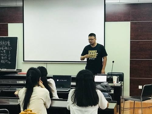 最后,王杨濮表示真正投入实践和纸上谈兵是完全不一样的,为使台下的同学有更深切的体验,他依照之前自己的经历对台下的19级同学进行提问,模拟真实的面试,并依据同学的回答进行解读和评价:实际内容并不是最为重要的部分,整体的逻辑和气质才是最重要的。
