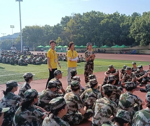 辛苦的训练终于结束,收操前教官按照惯例点评同学们一天的表现情况。与此同时,迎新团队也结束了一天的服务,在鲜艳的院旗下留下一张合影。