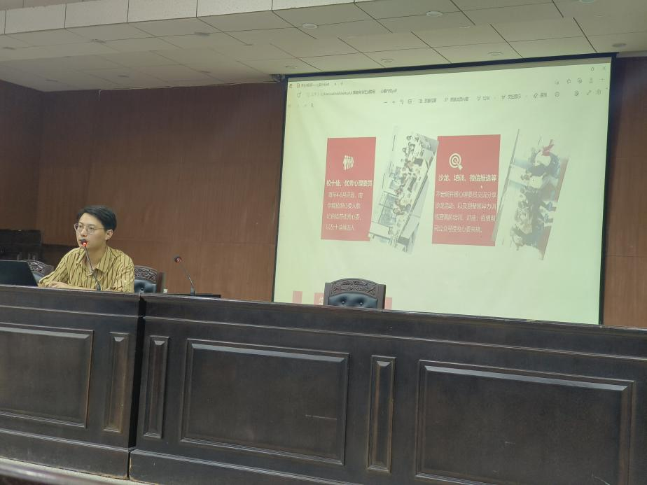 为加强新生心理健康教育工作,充分发挥心理委员、寝室长在心理健康教育工作中的作用,提高员工干部整体素质,球友会于2022年9月14日在模拟法庭开展新生心理工作培训会。本次培训会由2022级本科生辅导员曹晓军老师主讲,2022级各班心理委员、寝室长及其他员工干部参加。