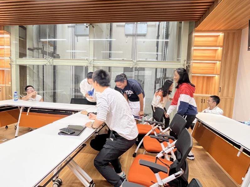 接着,为使不同班级员工骨干互相熟悉,在曹老师的组织下,全体员工骨干分成三组,在组内分别开展“滚雪球”识人游戏。同学们努力记住旁边同学的姓名、家乡和爱好,在最后一名同学成功汇报整组同学的信息时,大家纷纷给予热烈掌声;在有同学记错信息时,大家也会善意提醒,活动氛围轻松愉快。
