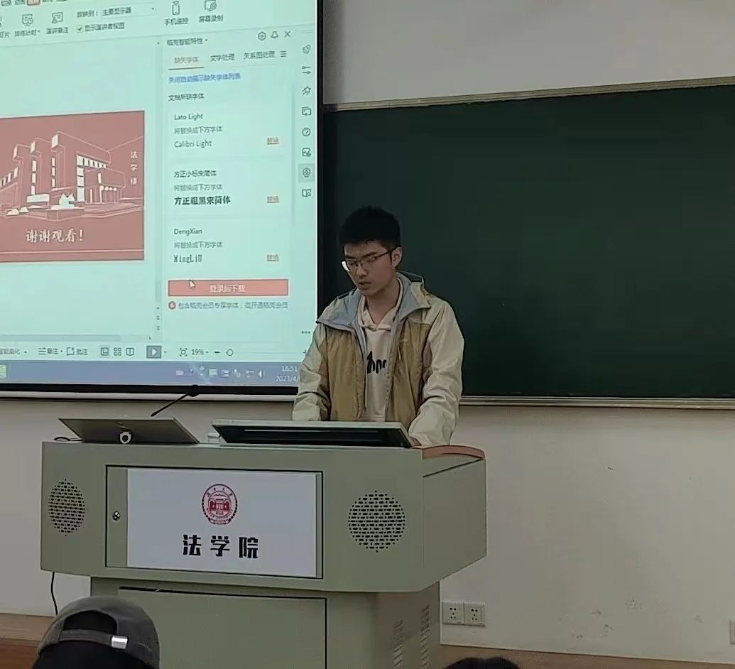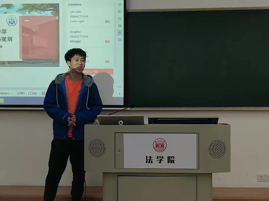 员工会权益部负责人靳高策对已开展的部门工作进行总结并反思工作中存在的不足如活动开展时间与考试有冲突、活动形式不新颖以至同学兴趣不高等。