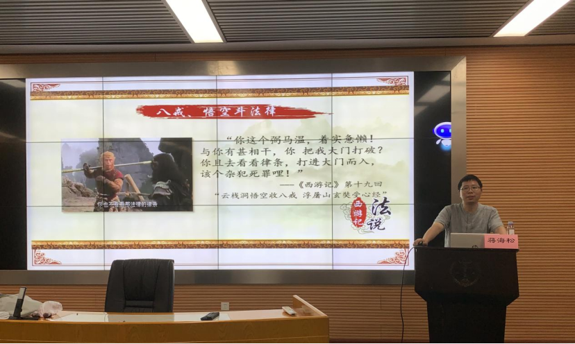 最后,蒋海松老师开讲《法说西游记》,将《西游记》中栩栩如生的人物形象结合法律小知识进行阐释,生动解读青少年喜闻乐见的《西游记》的法律故事,进一步以案说法、以例释法,并在法治问答中引导同学之间团结友爱、互帮互助,同学们纷纷参与互动,现场气氛热烈。讲座结束后,蒋海松老师与湖南师大附中的同学们合影留念,并欢迎大家报考qy球友会。