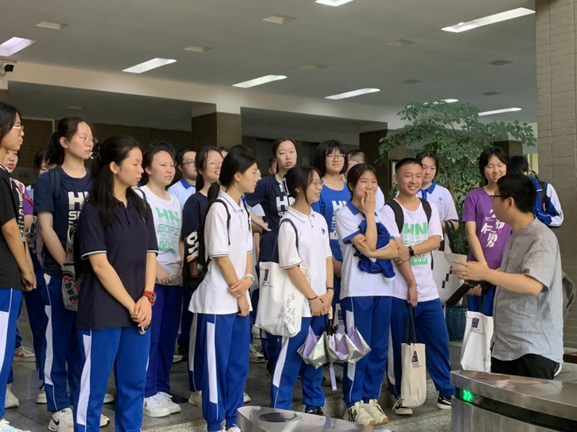 活动伊始,湖南师大附中一行在蒋海松老师的带领下参观了院楼,蒋海松老师和张伟浩同学为大家介绍了qy球友会发展的历史和院楼内的重要名言,大家在院楼门口合影留念。