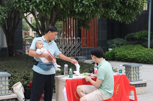 24日下午与25日,实践团先后来到迎丰街道板桥铺社区与城南街道奥林社区,社区书记为实践团介绍社区基本情况、基础设施、日常工作开展情况和本社区特色建设,组织社区干部与实践团成员分组访谈,并带领实践团简要参观所调研小区,实践团亦向社区赠送礼物。为给实践团提供便利,考虑到调研小区的实际,板桥铺社区联系物业在出入口准备了桌椅饮水等物资,并通过微信群散布调研消息,发动居民支持本次实践调研活动。奥林社区书记杨爱茹不仅早早联系了居民小区为调研做准备,在晚上七点左右还来探望实践团同学们,询问调研进展,嘱咐小区物业配合支持。见门口进出的居民较少,她果断地带着几位同学走进小区花园,向居民主动介绍实践团,劝说居民积极参与访谈。25日夜间天气预报有雨,团区委副书记特意打来电话,询问实践团是否需要雨棚。