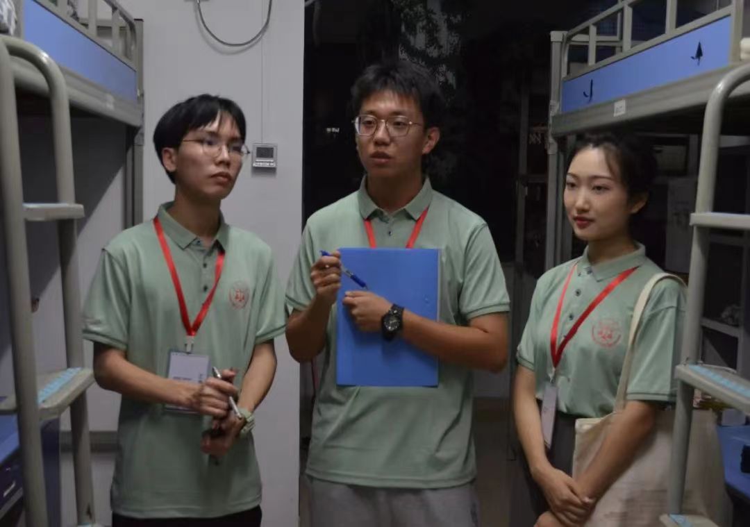 报到当晚,公司领导走进寝室,与新同学们交流,表示慰问。迎新团队组织查寝,确认新生入住情况,与萌新们交流报到感受,对萌新们的疑问做出详细解答。