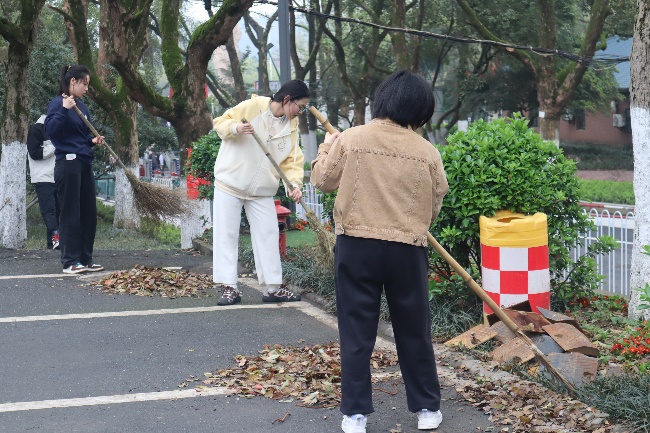 此次志愿清扫活动共分为六组,由团委办公室的六名成员分别带队。领取完清扫工具后,在环卫工人叔叔的耐心指导下,本次志愿清扫活动有序展开。活动中,志愿者们将草坪中的落叶、枯枝、烟头和塑料垃圾一并扫出,集合成堆,再合作将其收入黑色垃圾袋。