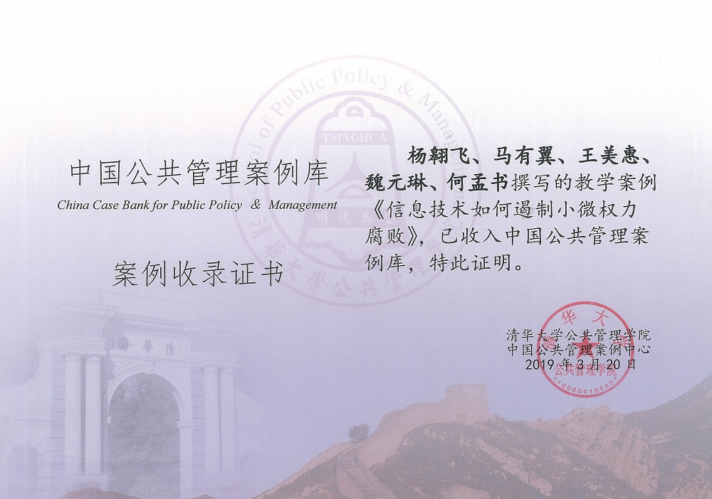 3月20日,由邬彬老师指导,2016级行政管理专业本科生杨翱飞、马有翼、王美惠、魏元琳、何孟书撰写的教学案例《信息技术如何遏制小微权力腐败——以湖南麻阳“互联网+监督”平台为个案》被中国公共管理案例库收录(案例编号:CCC-18-499),这是公司首次有本科生团队撰写案例被全国性公共管理案例库收录。