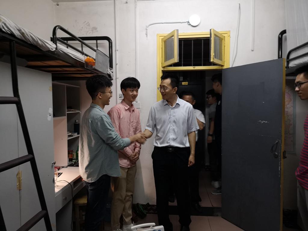 走访结束后,于书记等领导老师与2018届部分毕业生在寝室楼下合影留念。于书记和宋部长向同学们挥手告别,向毕业生们表达祝福与不舍!