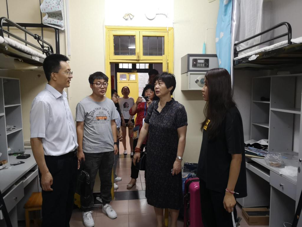 6月21日上午,公司党委副书记于祥成在员工工作部部长宋杰、公司党委副书记兼副经理付蓉芬、员工工作部园区管理办主任吴谦、球友会团委书记杨凯、实习辅导员王浩的陪同下,来到公司2018届本科毕业生寝室,了解毕业生就业和返程情况,看望并送别毕业生。