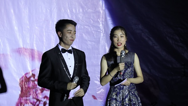 身着民族服装的少数民族同学们走下舞台后,晚会进入了第二个互动环节——“蒙面猜歌王”。十首歌曲,听音乐猜歌名,现场的观众们各出奇招,或挥舞手中的道具,或展示自己的才华,吸引着主持人的注意。在李永罗、钱娅两位主持人的带动下,现场笑料不断,晚会气氛也渐渐走入新的高潮。互动环节结束后,在主持人风趣的对话中,赵高鹿、黎曙光、贺俊峰三位研究生同学走上舞台,为观众们带来歌曲串烧《追光岁月》,动人的歌喉和精彩的吉他伴奏大受好评,更是赢得了不少观众的掌声与尖叫声。随后,由17级法学五班的同学们表演的小品《后宫张嬛传》为现场带来了阵阵欢笑,张子政、谷雨两位同学的反串出演,精湛的演技配合恰到好处的包袱,古灵精怪的对白和出人意料的剧情,令观众们捧腹大笑,拍手称赞,尤其是两位同学滑稽的舞蹈动作,令人印象深刻。