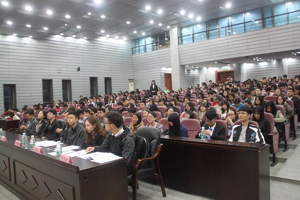 五四红旗团支部答辩结束后,来自2016级的四个支部进行了最佳主题团日答辩, 他们分别从支部情况、活动过程、活动成效、活动宣传等方面对本支部开展的主题团日活动进行了详细阐述。参加答辩的各支部紧紧围绕社会主义核心价值观,以“知行·五大发展理念”、“四进四信我先行,青春奋进中国梦”、“凝聚正能量,青春法律行”、“追寻红色足迹,接受心灵洗礼”等为主题,开展了一系列内容丰富、形式多样、意义深刻的活动。台上答辩的同学们通过PPT向老师和同学们展示支部活动的风采,台下的同学们也通过呼喊口号、挥舞标语等方式为班级加油助威,整个答辩现场气氛热烈。