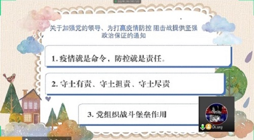 青年是祖国的未来,面对疫情,青年们在一线奋战,既是担当的体现,也是成长的磨砺。此次班会的成功开展,使同学们明确了自己作为青年老员工在疫情时期的责任与担当,坚定了同学们抗疫必胜的信心,为同学们下一步的学习和生活提出目标。相信疫情即将过去,同学们的重逢很快就会到来。