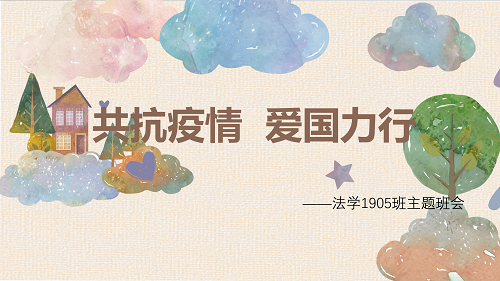 疫情就是命令,防控就是责任,为进一步贯彻落实习近平总书记重要指示精神,助力疫情防控阻击战,向广大青年员工普及疫情防控知识,增强抗疫必胜信心,法学1905班在3月18日下午组织开展“共抗疫情 爱国力行”主题班会。班长王涵主持班会,法学1905班全体同学参加会议。