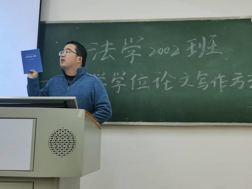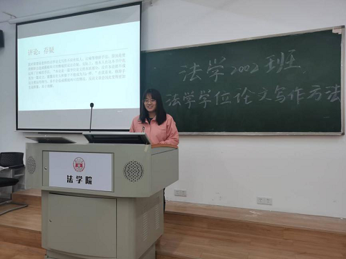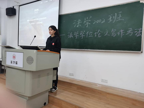 2020年12月7日晚上,法学 2002班读书会在球友会303教室顺利开展。法学2002班班主任龙博老师以及法学2002班全体成员参加读书报告会。读书会围绕着法学家梁慧星教授的《法学学位论文写作方法》展开,由三个读书小组分别派代表上台进行汇报展示。