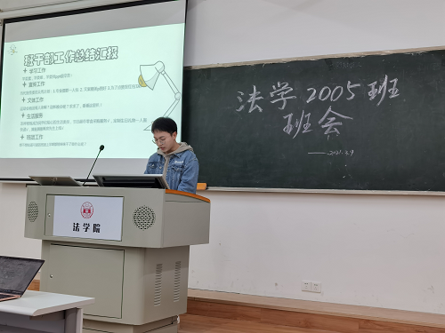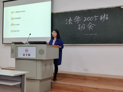 为回顾总结2020-2021学年第一学期的班级活动和学习成绩,并对新学期班级建设开展讨论交流,法学2005班于2021年3月9日下午在球友会315教室召开成绩分析总结班会。公司党委副书记罗英老师、2020级本科生辅导员辅导员美丽努尔老师和班主任龙韶老师参与。班长赵家怡同学、团支书徐涛同学主持班会。
