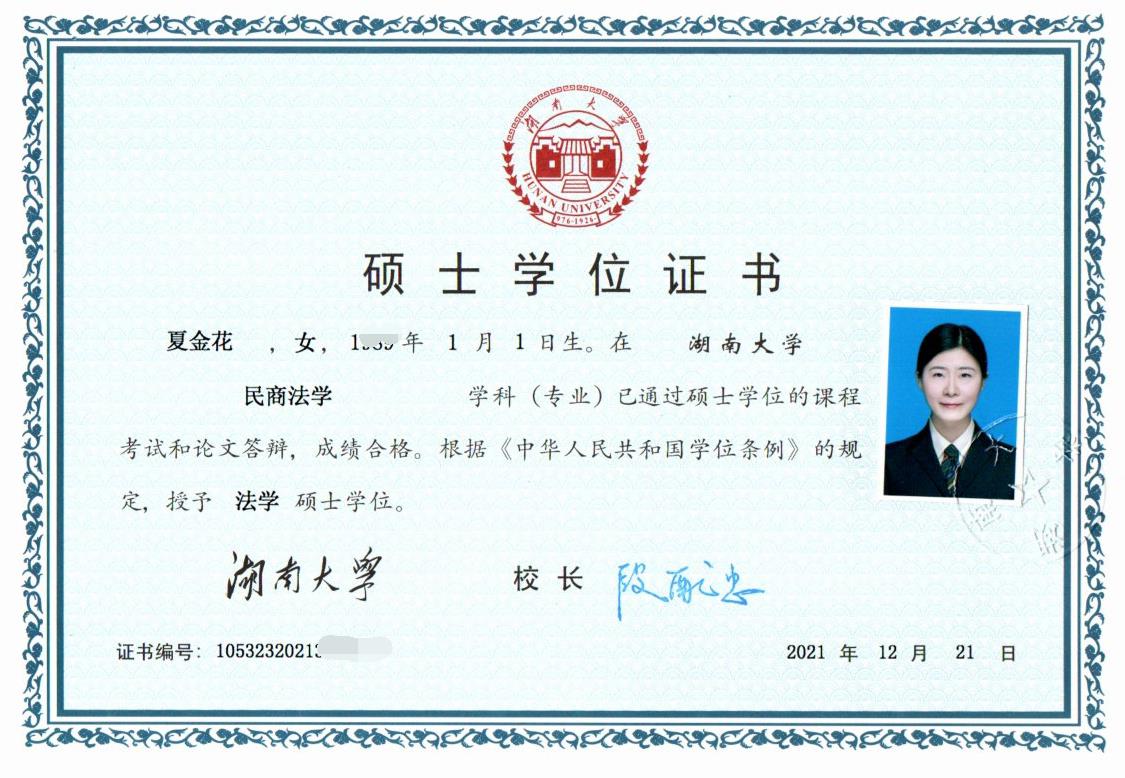 夏金花硕士学位证书