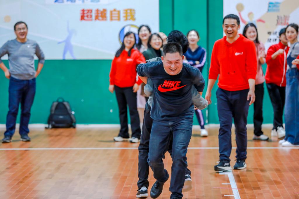 因临时下雨,活动移步到室内。同学们首先在室内进行了一场“3v3”的篮球对抗赛,虽比不上NBA的精彩,但也贡献了这群中年员工的全部体力。稍事休息后,下半程的活动主持人文彬同学又组织大家玩起了“达芬奇密码”游戏和“背靠背夹球跑”游戏,同学们的团队协作能力和沟通能力得到进一步提高,尤其在“背靠背运球”游戏中,二组的极限反超更是掀起了活动的高潮。当然,中间还少不了我们的“击鼓传花”游戏,在那一个个坑人与被坑的操作中,班主任张娜老师的魔性操作和多才多艺引来了同学们的阵阵笑声和掌声。